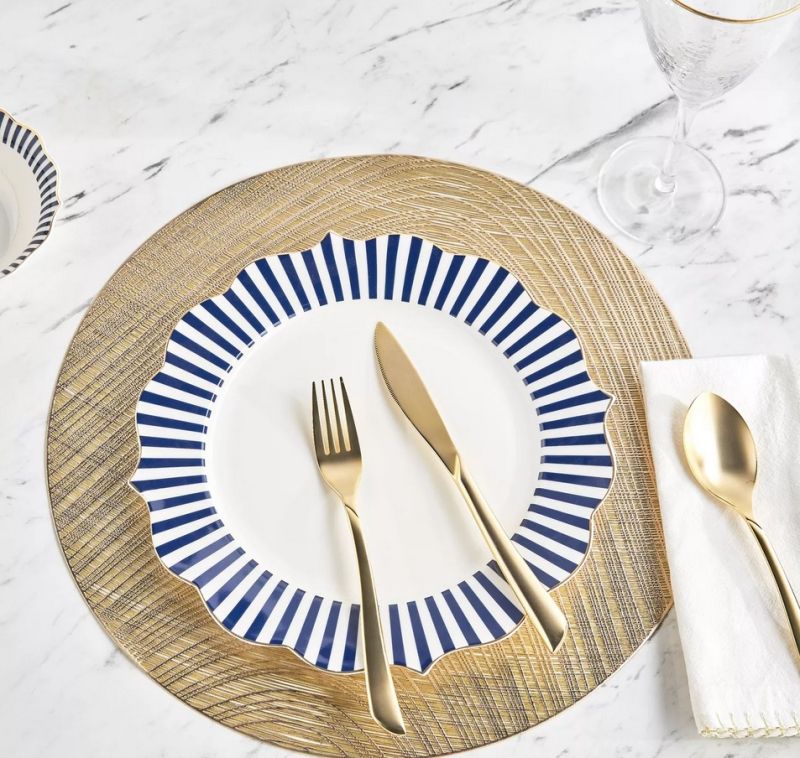 - Елегантен дизайн: Златните вълни придават луксозен вид на вашата трапезария.